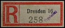 Der Blick geht auf den Zweikreis-Doppelsteg-Stempel „Dresden/Vogelwiese“… und auf den Sonder-R-Zettel „Dresden/Vogelwiese.“